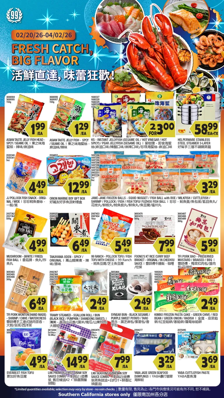 You’re viewing the 99 Ranch Market weekly ad, valid from 02/20/2026 to 04/02/2026. Visit our website regularly to stay up to date with the latest deals and promotions from your favorite stores.