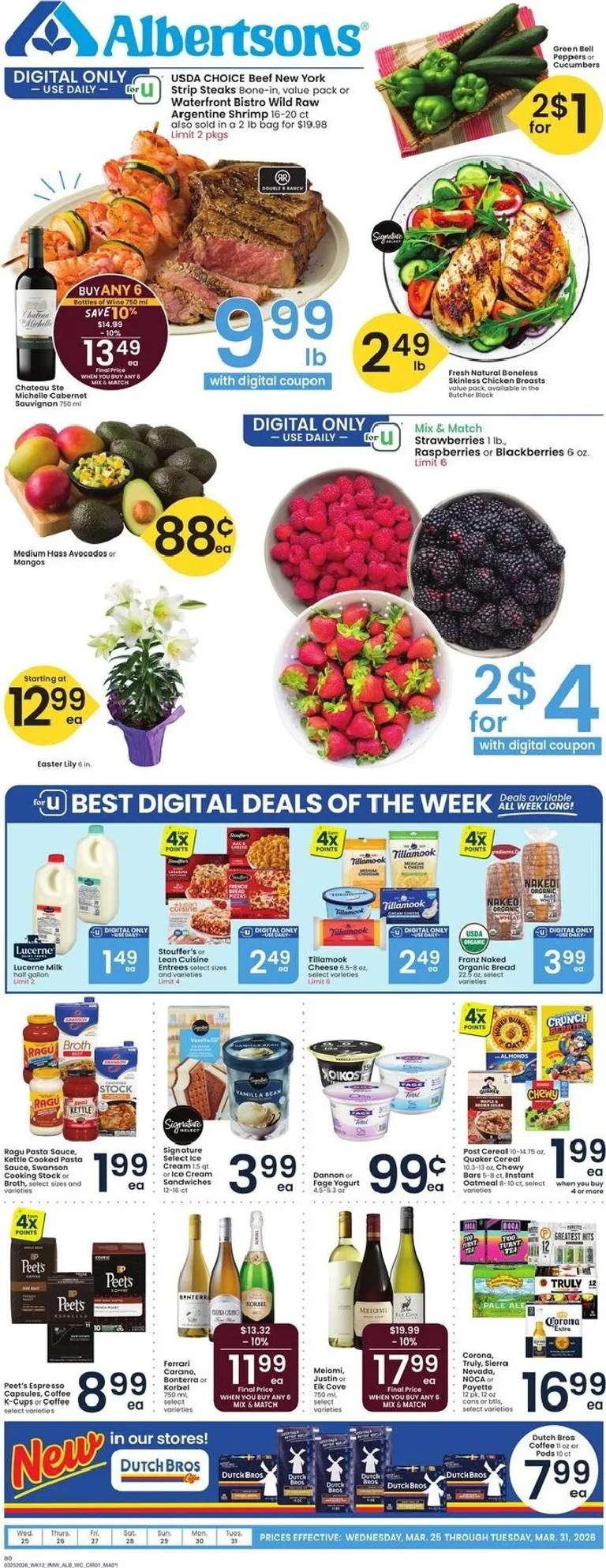 You’re viewing the Albertsons weekly ad, valid from 03/25/2026 to 03/31/2026. Visit our website regularly to stay up to date with the latest deals and promotions from your favorite stores.