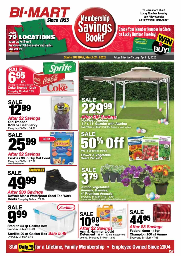 You’re viewing the Bi-Mart weekly ad, valid from 03/24/2026 to 04/13/2026. Visit our website regularly to stay up to date with the latest deals and promotions from your favorite stores.