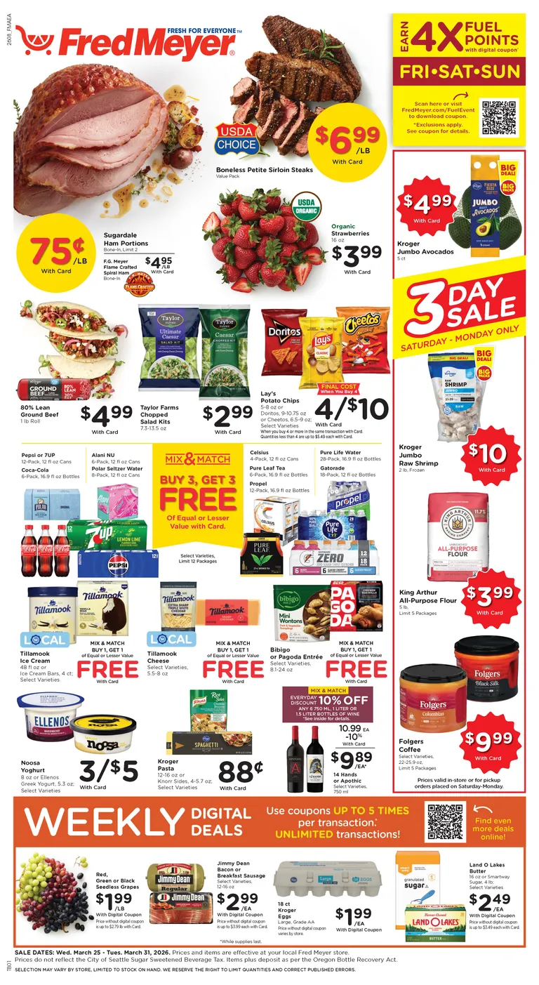 You’re viewing the Fred Meyer weekly ad, valid from 03/25/2026 to 03/31/2026. Visit our website regularly to stay up to date with the latest deals and promotions from your favorite stores.