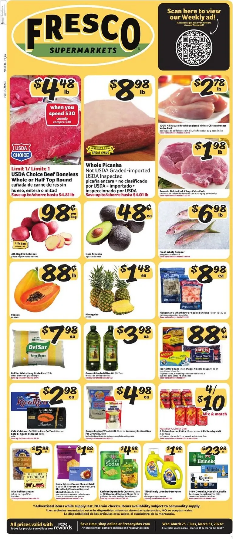You’re viewing the Fresco y Más weekly ad, valid from 03/25/2026 to 03/31/2026. Visit our website regularly to stay up to date with the latest deals and promotions from your favorite stores.