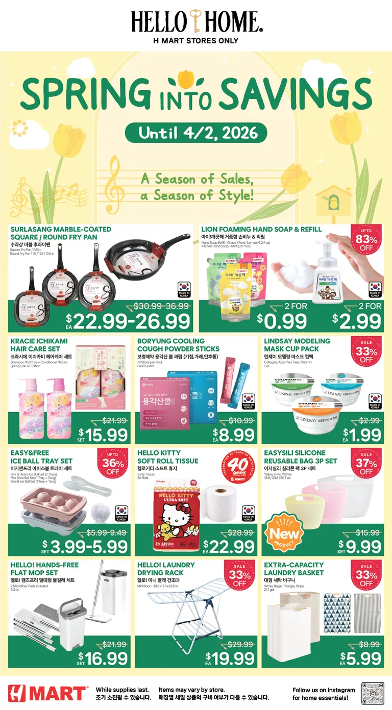You’re viewing the H Mart weekly ad, valid from 03/27/2026 to 04/02/2026. Visit our website regularly to stay up to date with the latest deals and promotions from your favorite stores.