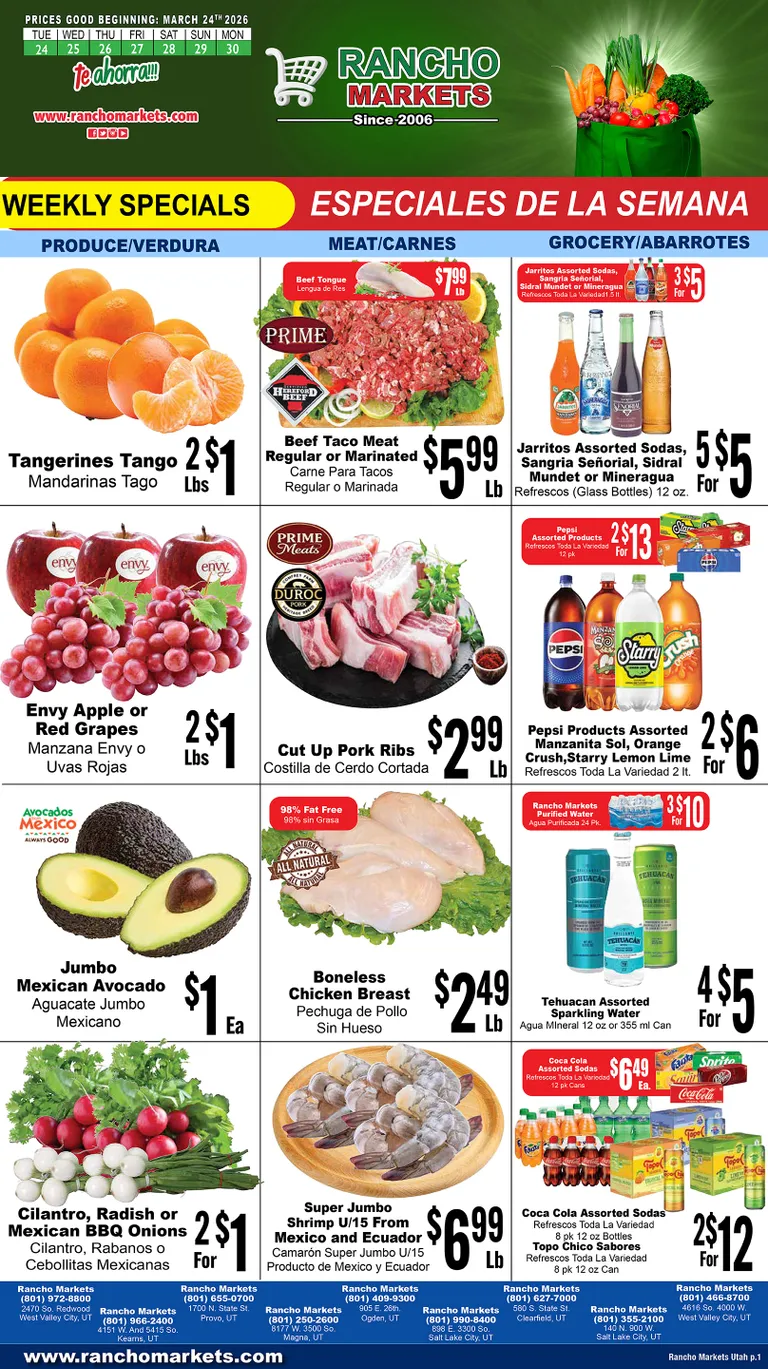 You’re viewing the Rancho Markets weekly ad, valid from 03/24/2026 to 03/30/2026. Visit our website regularly to stay up to date with the latest deals and promotions from your favorite stores.